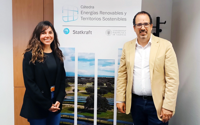 Gabriel García Martínez, profesor de la Universitat Politècnica de València y director de la Cátedra Statkraft-UPV, y Erica Morales Prieto, responsable de Sostenibilidad de Statkraft, han firmado la renovación anual de la Cátedra Statkraft-UPV de ‘Energías Renovables y Territorios Sostenibles’, creada en mayo de 2023 y adscrita a la Escuela Técnica Superior de Ingeniería Agronómica y del Medio Natural (ETSEAMN) y al Centro de Investigación en Gestión de Empresas (CEGEA).